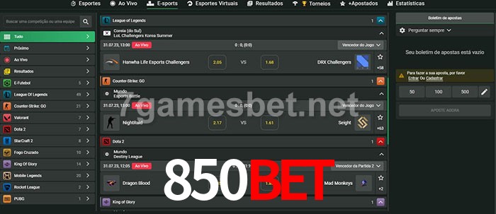 O 850Bet oferece uma grande seleção de opções de apostas em e-sports com probabilidades competitivas
